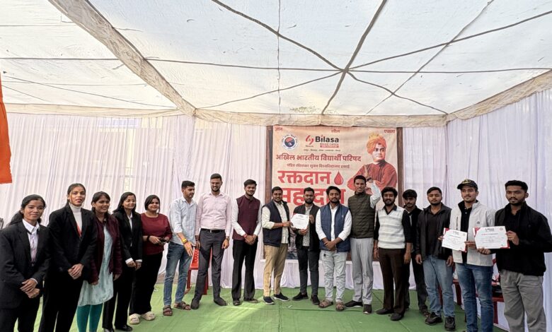 रायपुर l अखिल भारतीय विद्यार्थी परिषद, पं. रविशंकर शुक्ल विश्वविद्यालय इकाई द्वारा भारत रत्न एवं संविधान शिल्पी डॉ. भीमराव रामजी अंबेडकर की पुण्यतिथि सामाजिक समरसता दिवस के अवसर पर एक विशाल रक्तदान शिविर बिलासा ब्लड बैंक के साथ आयोजन किया गया। इस अवसर पर विश्वविद्यालय परिवार में कुल 103 यूनिट रक्तदान किया, जो सामाजिक दायित्व एवं मानवीय सेवा का एक ऐतिहासिक उदाहरण है।